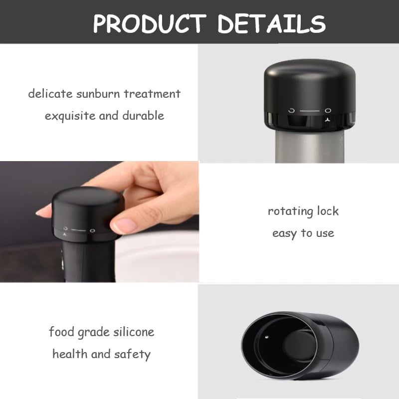 By optimizing the internal structure, the mini wine/champagne sealer can make the wine stopper fit perfectly, and firmly lock the gas in the bottle to prevent the bubbles from slowly dissipating after opening the bottle.
